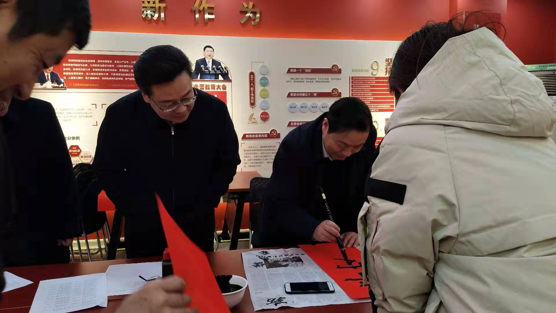 墨香迎新春 1月19日、20日,运城教育局党组书记、局长李明,党组成员、总督学张俊耀及局机关、市直学校书法爱好者在党员活动室为单位员工书写对联近百副。此举不仅弘扬和传承了中国优秀传统文化,增强文化自信,而且营造了浓浓的春节氛围,同时也送去了党组织对员工的关怀。 ( 焦云竹 薛前发)