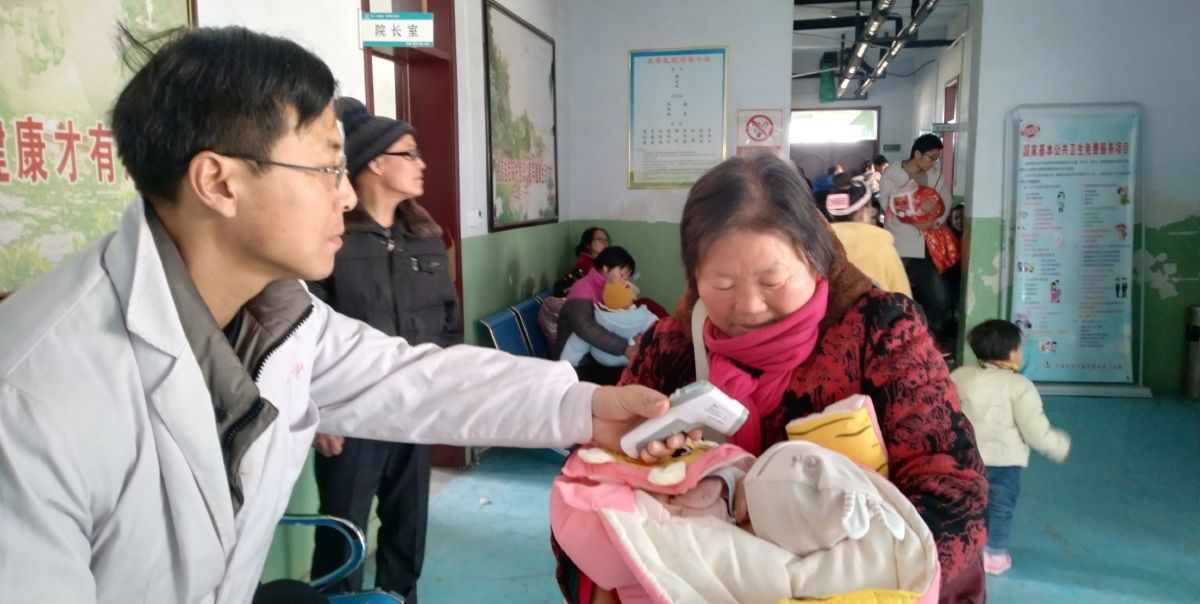 1月20日,万荣县医疗集团荣河镇卫生院的医护人员,在为辖区3岁及以下儿童免费体检。