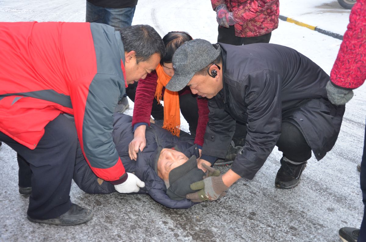 当日8时许,万荣县裴庄乡裴庄村村民裴成家外出晨练,当行至裴庄村村门楼附近时,不小心脚下一滑,摔倒在雪地上。路过此地的裴庄村村民刘明杰急忙放下电动车,查看老人伤情;经营化肥的裴玉龙急忙拨打120急救电话;村民裴满荣开来了自家的电动车……裴明泉、刘明杰、秦耀玲、王荣进等十几位村民一起把裴成家老人送往医院。