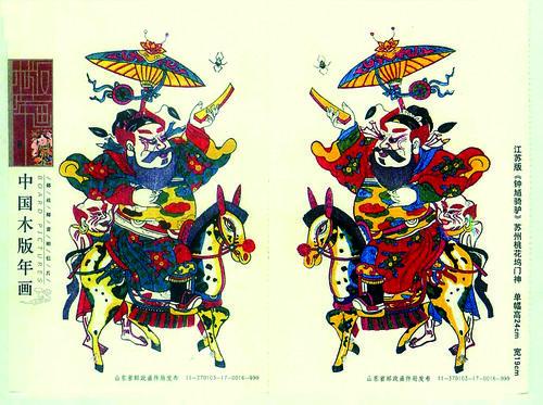老友左汉中曾供职于湖南美术出版社,编著出版的《民间木版年画图形》一书,我十分欣赏。此中就收录天津杨柳青传统年画作品多种,在“神像年画”一辑中,门神像就有神荼、郁垒、秦叔宝、尉迟敬德等数幅,刻工细腻,线纹流畅,历来广受欢迎。