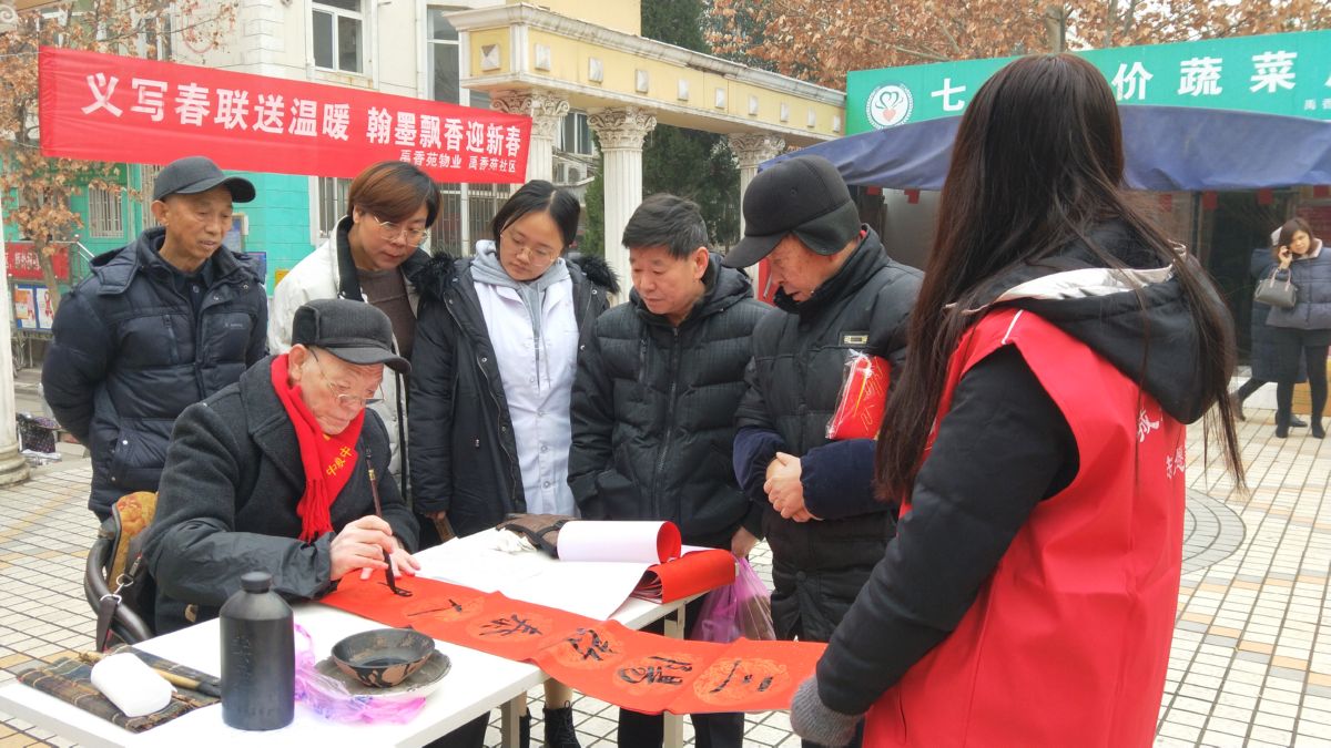 活动现场,在书法爱好者的笔下,行、隶、草等多种字体的春联尽显神韵,许多居民纷纷驻足欣赏,领取春联。
