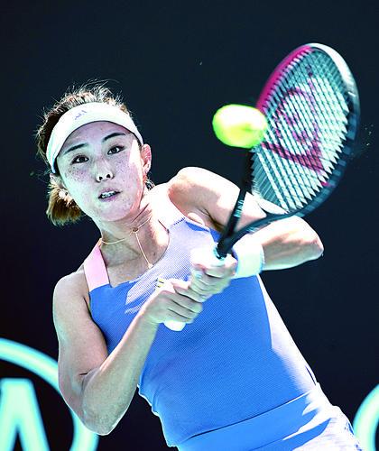 ▲1月21日,王蔷在比赛中回球。 当日,在澳大利亚墨尔本进行的澳大利亚网球公开赛女子单打首轮赛中,中国选手王蔷以2:0战胜法国选手帕尔芒捷,晋级下一轮。 新华社发