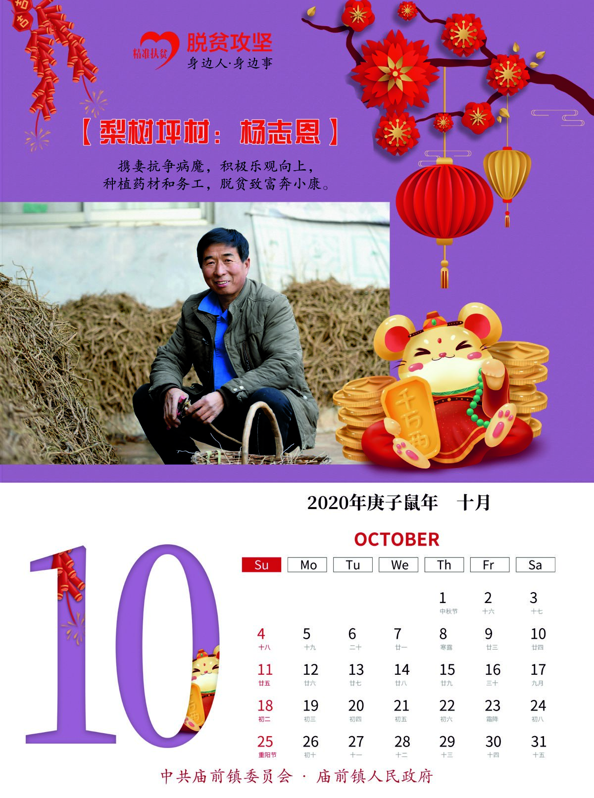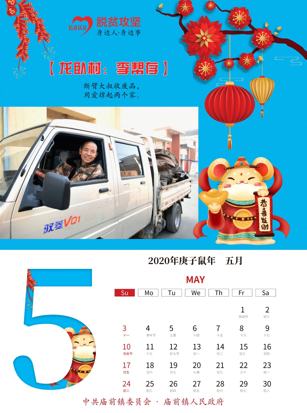 “这本挂历,接地气、聚人气、扬正气,涵盖了产业扶贫、就业扶贫、金融扶贫、教育扶贫、健康扶贫、易地扶贫搬迁等方方面面的政策措施,是全镇所有贫困户应享尽享、共享脱贫成果的缩影。”在庙前镇南吴村采访时,村党支部书记兼村委会主任薛永顺说。