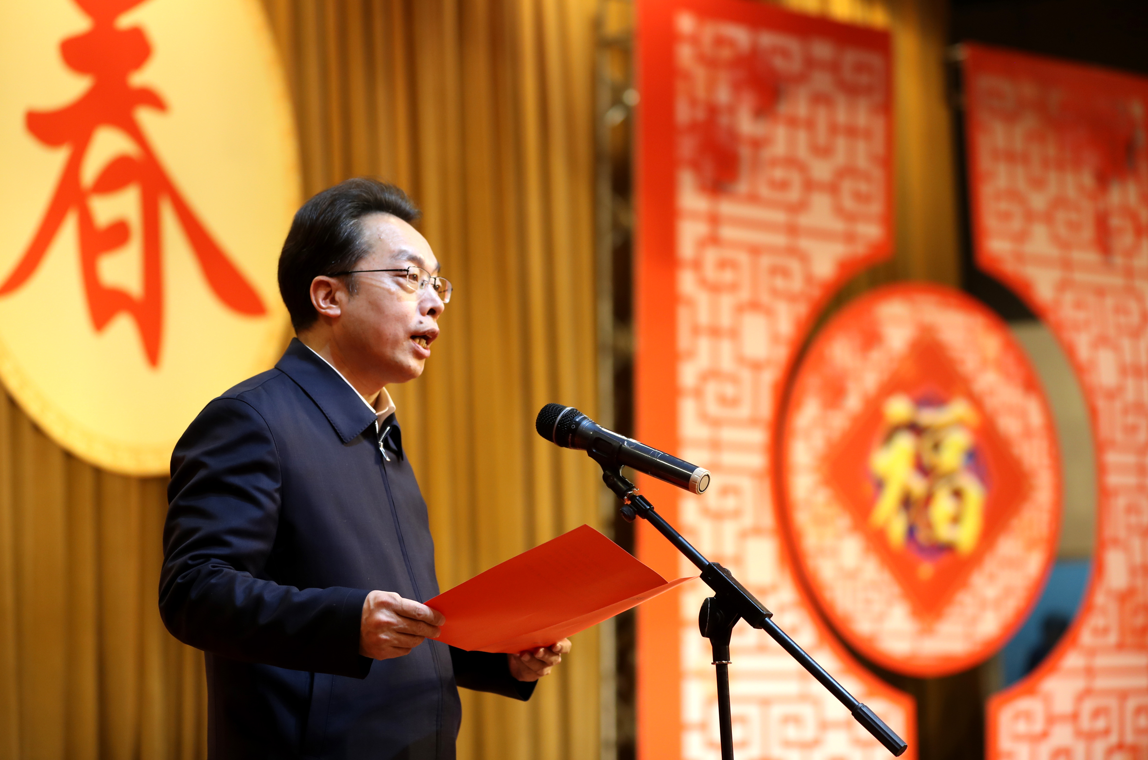 朱鹏主持团拜会。 记者 雷哲侠 摄