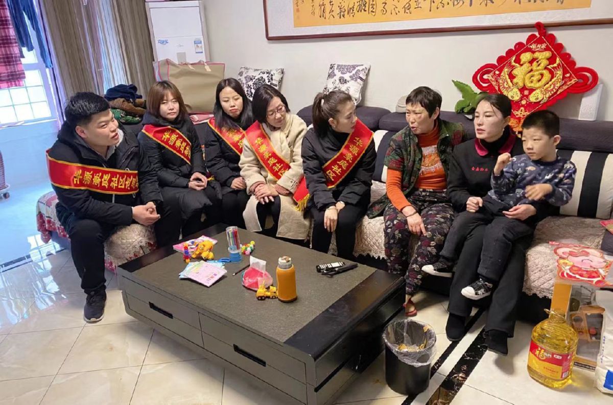 社区工作人员在入户慰问 寻霄 摄