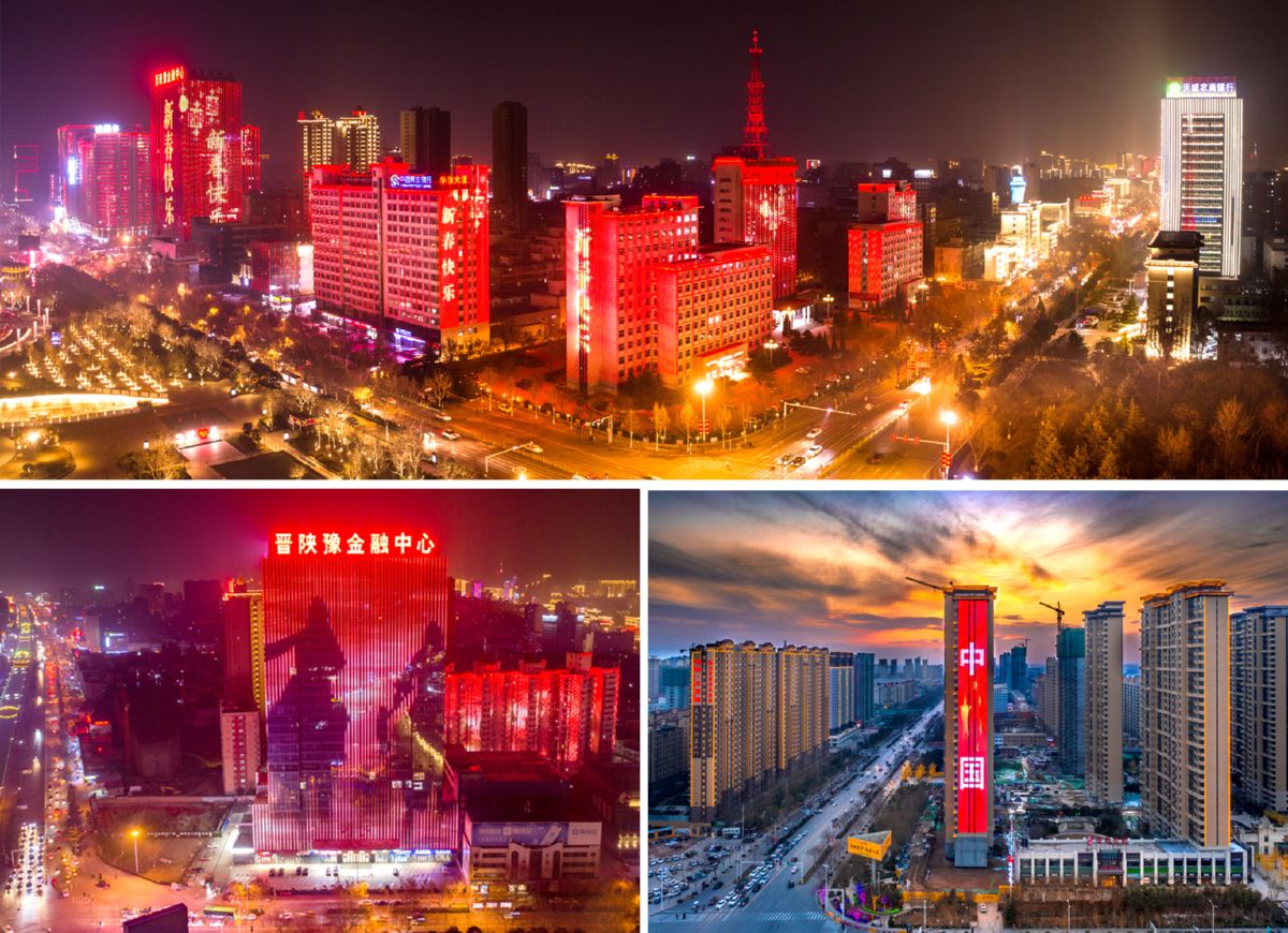 ▲1月21日,在市区拍摄的城市楼体灯光秀。 记者 薛俊 摄
