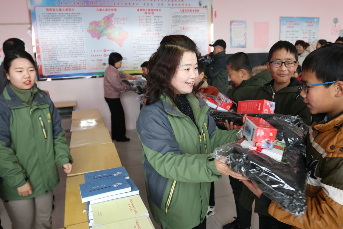 ▲1月15日,在闻喜县畖底镇康村,20名儿童收到了该县赠送的棉衣、书包等用品。 特约摄影 刘佳