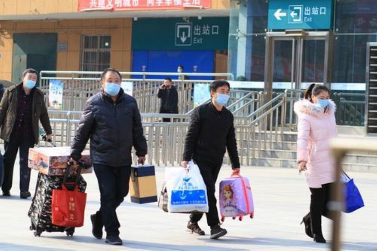 1月29日,年后返程的旅客进出车站。特约摄影 姜 桦 摄