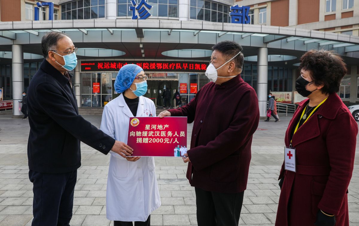 1月31日,山西星河房地产开发有限公司向市中心医院援鄂医疗队队员家属赠送慰问金。