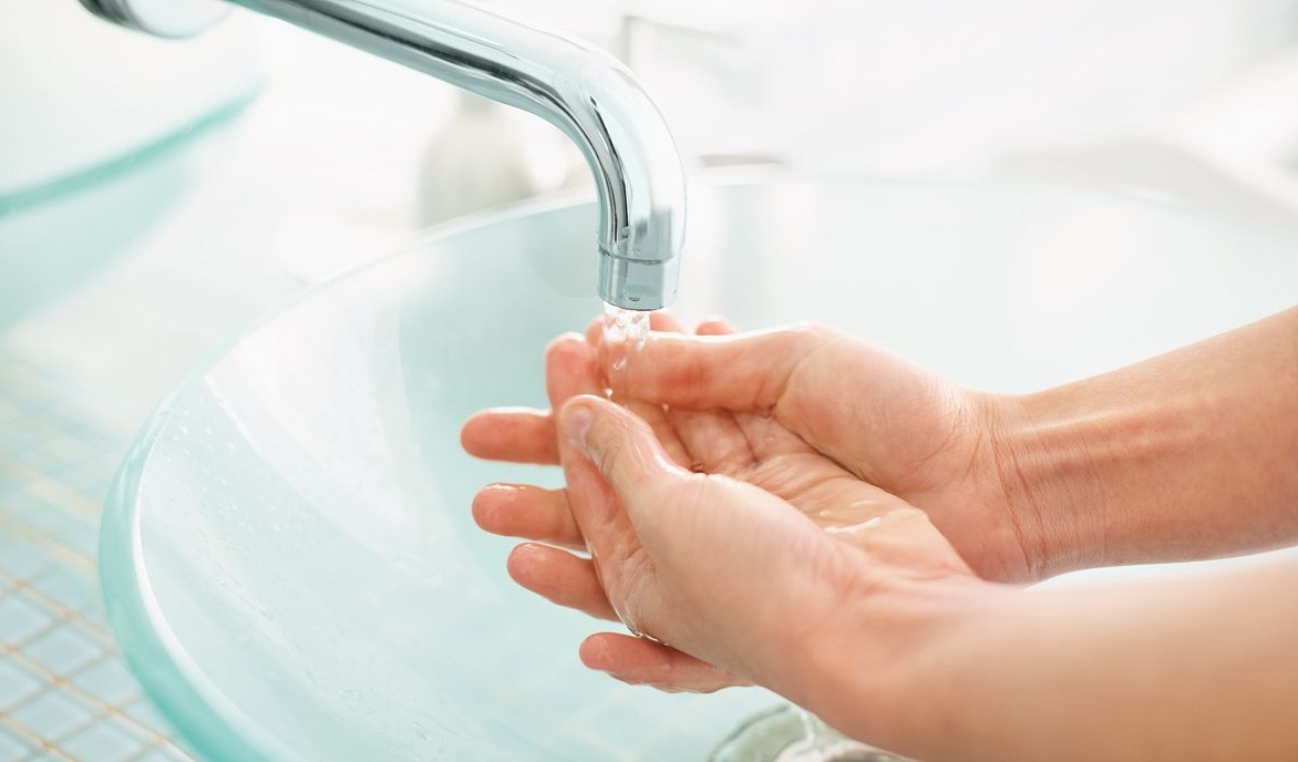 冲洗干净:在整个冲洗过程中,双手须保持比较向下的姿势,以避免水逆流回未洗的手肘部位。