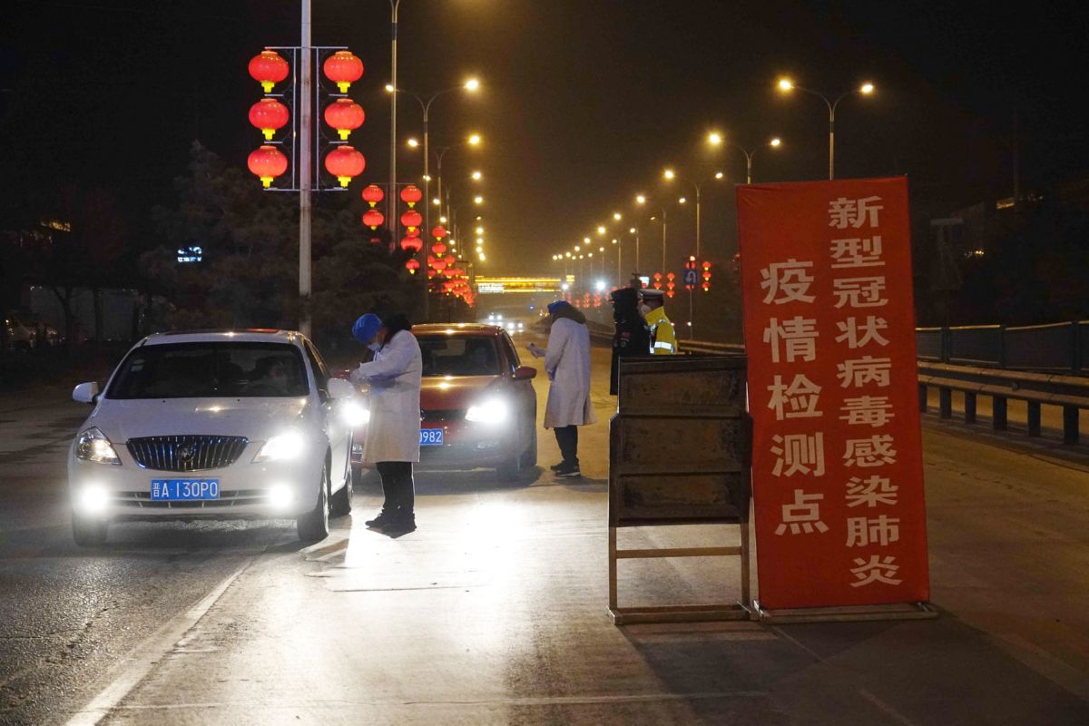 1月28日晚,新绛县公安交警、特警和疾控人员在108国道新型冠状病毒感染的肺炎疫情检测点,对外来车辆和人员进行严格登记和体温检测。