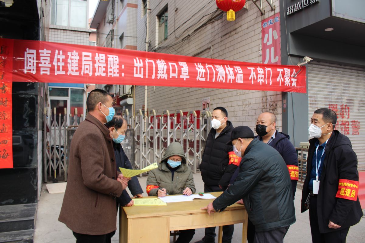 ▲闻喜县物业管理中心工作人员在居民小区开展疫情防控督查。
