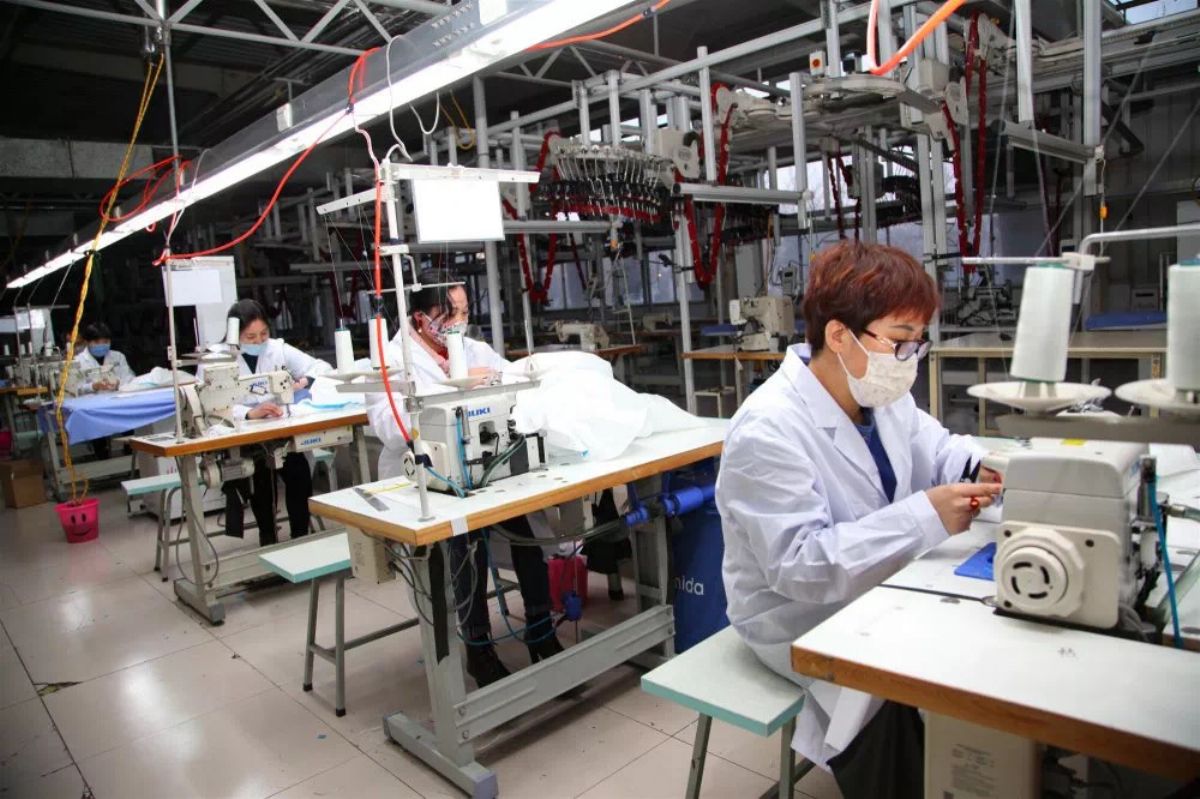 山西兵娟实业有限公司员工加班加点生产医用防护服