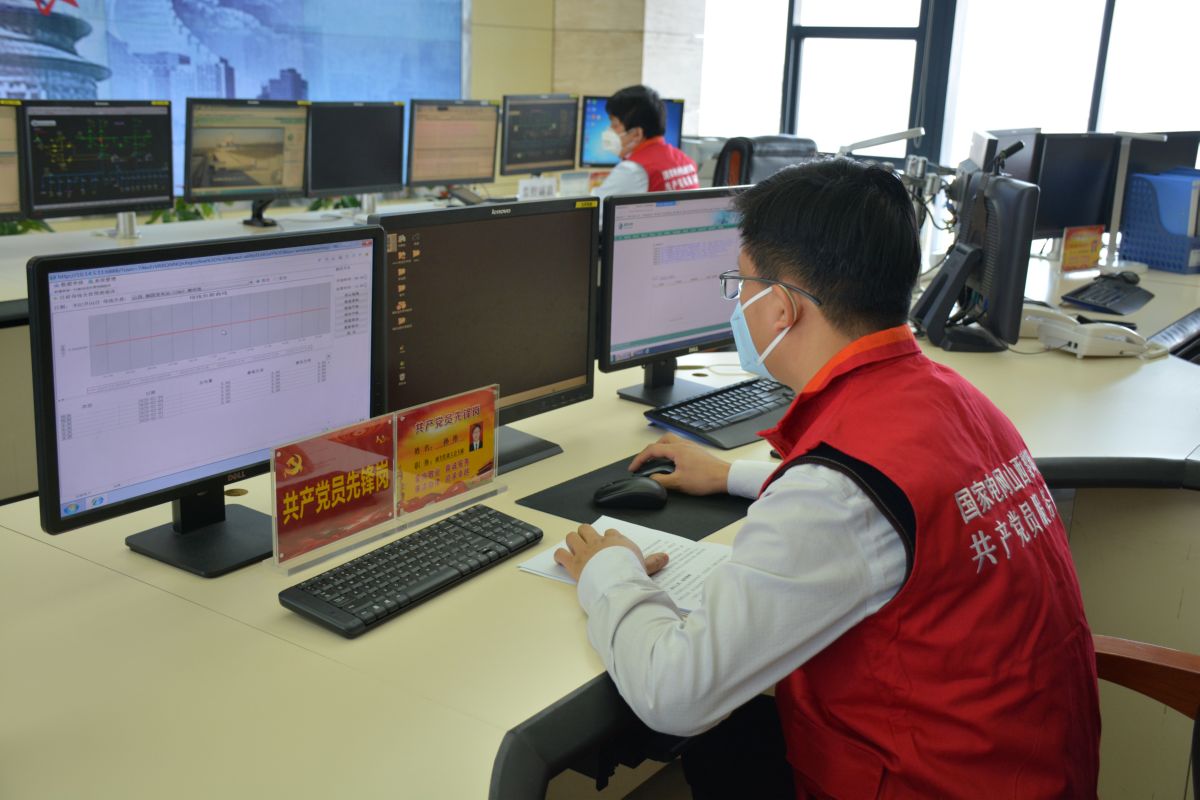 调控中心党员先锋岗成员在控制中心坚守。 祁克宁 摄