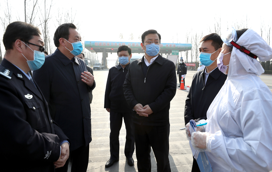 在运稷线翟店收费站检测口,工作人员正在严格检查过往车辆。丁小强认真查阅排查台账,深入了解车辆检测及防控措施落实情况。他指出,随着返程复工复学高峰的到来,疫情防控到了更加关键的时刻。要从严从细检查,清楚掌握往返人员数量和流向,不漏一车、不漏一人,守好“双防”的重要关口。在稷峰镇姚村防控检测点,丁小强详细询问该村返乡人员摸排底数、隔离措施等。得知该村党员干部带头,实现全村147条巷道防控无死角、返乡人员隔离全到位时,丁小强给予高度肯定。他说,要充分发挥基层党组织战斗堡垒和党员先锋模范作用,把村民充分发动起来,群防群控、联防联控、自防自控,构筑起疫情防控的坚强人民防线。