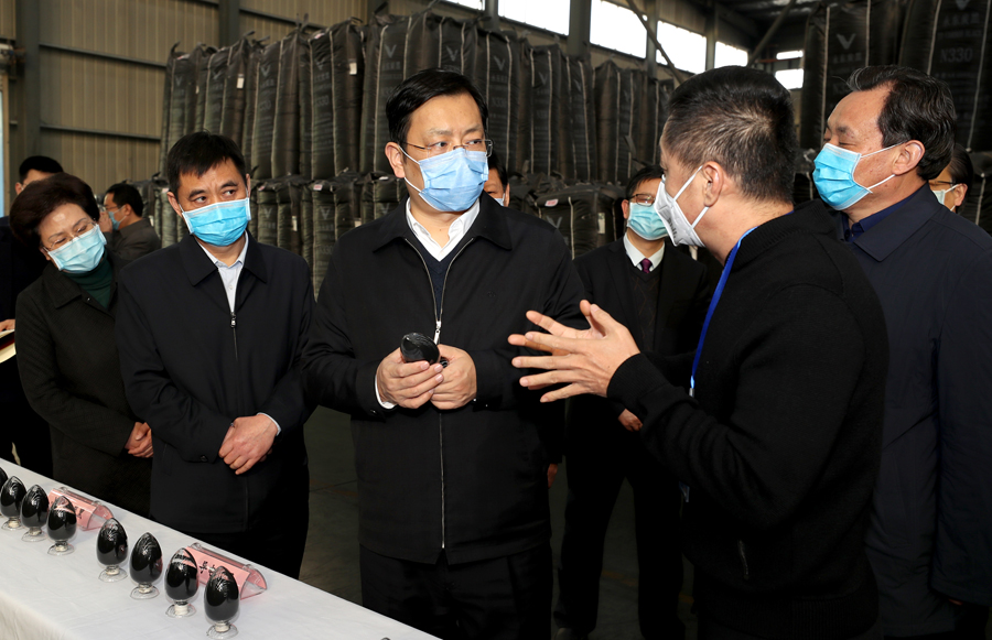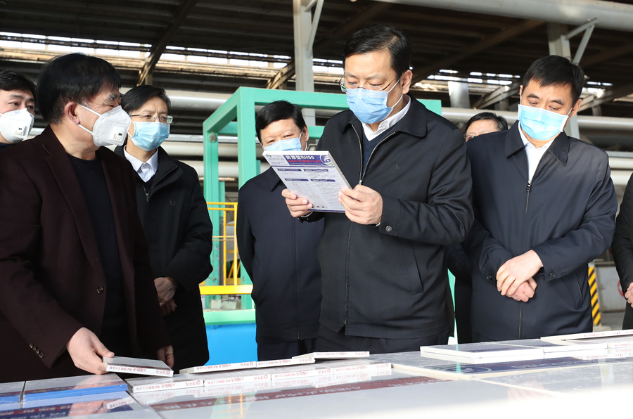 永东化工股份有限公司是一家利用循环方式生产制造精细化工产品的高新技术企业。丁小强来到炭黑车间,详细了解企业疫情防控及生产情况,叮嘱企业负责人要在落实落细疫情防控各项措施的基础上抓好生产经营;要围绕产业链以商招商,大力引进下游企业,不断延伸产业链,实现中间产品向终端产品转变。东方资源发展有限公司加快产业转型升级,建成了矿棉吸音板项目,实现了工业废渣的循环利用。丁小强与公司负责人交流企业运行、技术研发、市场推广等情况,现场解决企业面临的发展问题。他鼓励企业要坚持创新为上,进一步加大技改力度,继续拓展市场,提高综合效益。要加大绿化美化力度,抓好周边环境综合整治,打造一流营商环境。