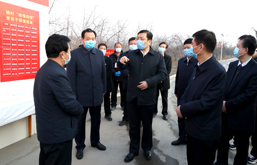丁小强在稷峰镇姚村检查疫情防控工作 记者 雷哲侠 摄