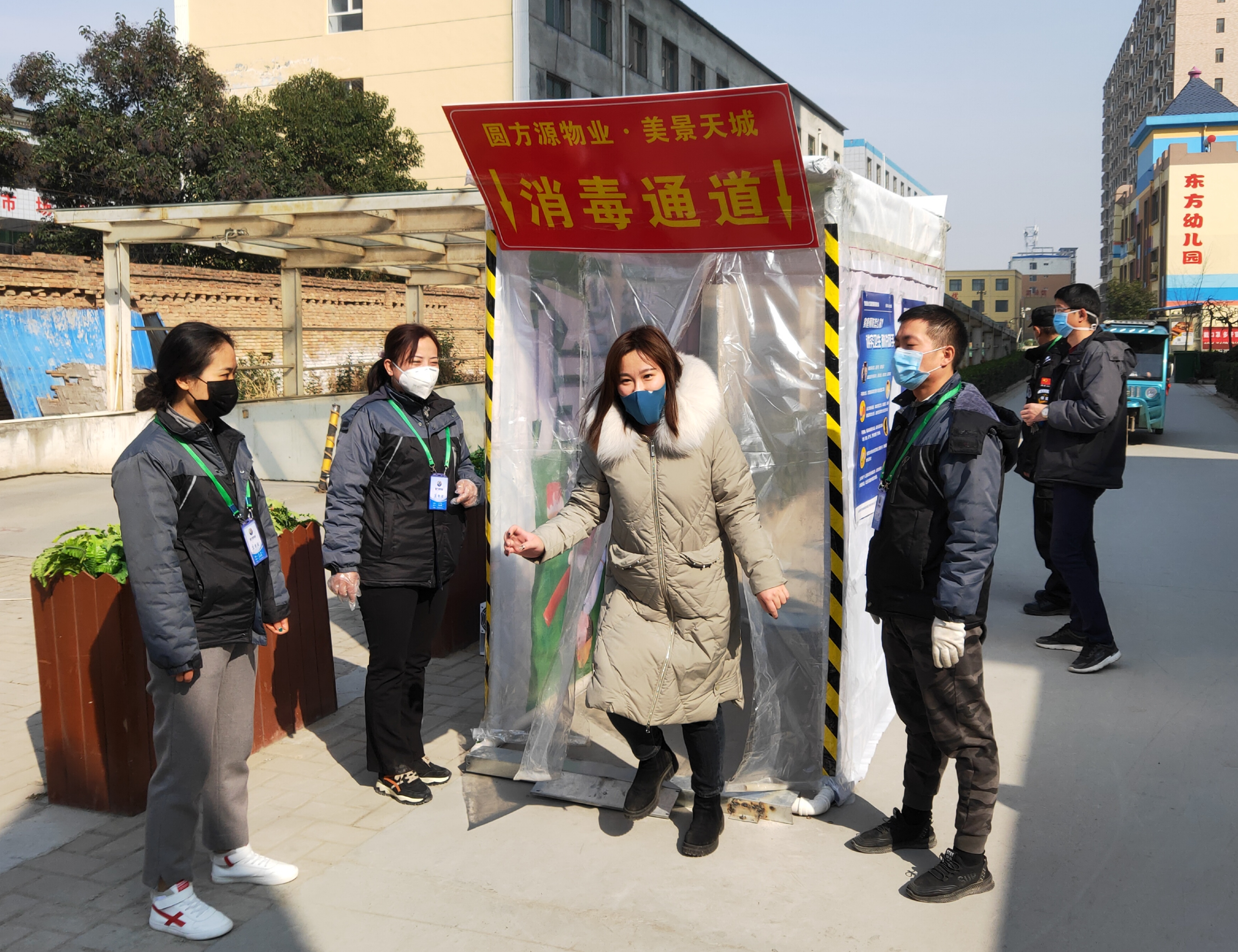 运城晚报讯(记者 范楚乔)2月10日,山西圆方源物业公司为市区美景天城小区业主制作的临时消毒通道上岗,成为该小区防疫斗争的一个硬核装备。