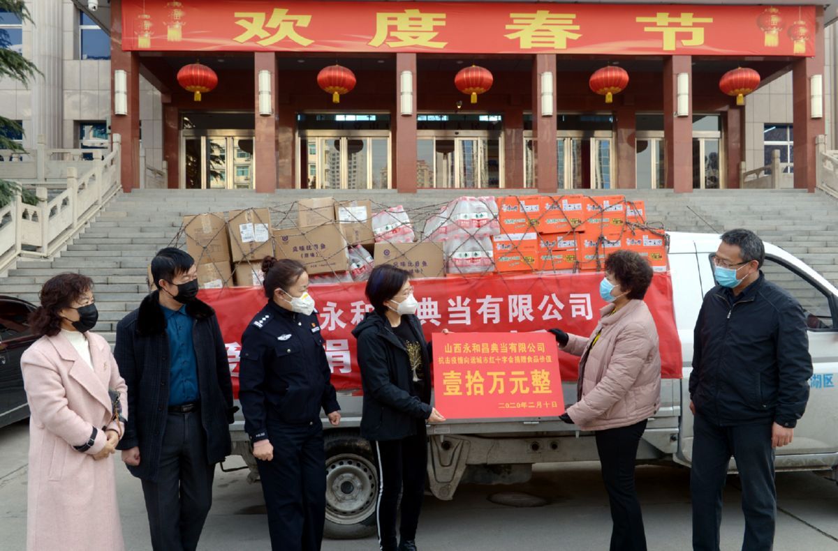 疫情就是命令,防控就是责任。在防控疫情中,该公司在保障员工健康安全的同时,积极回报社会,采购了方便面、带鱼、比目鱼等食品,在市工商联的安排下,通过市红十字会,将捐赠物品送给担任防疫一线工作的公安民警,前方和后方用爱凝聚着力量,携手同行打赢疫情防控阻击战。“疫情仍在继续,战斗还未结束,坚守初心,永和昌人与防疫一线人员心和心在一起,行动在一起,信心在一起,通过大家的共同努力,我们有信心、有能力、有决心打赢疫情防控阻击战。”市政协委员、运城永和昌典当有限责任公司董事长赵润琴说。