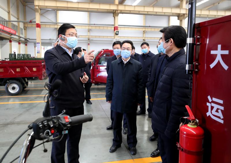 丁小强、朱鹏在大运电动三轮车厂区调研 记者 雷哲侠 摄