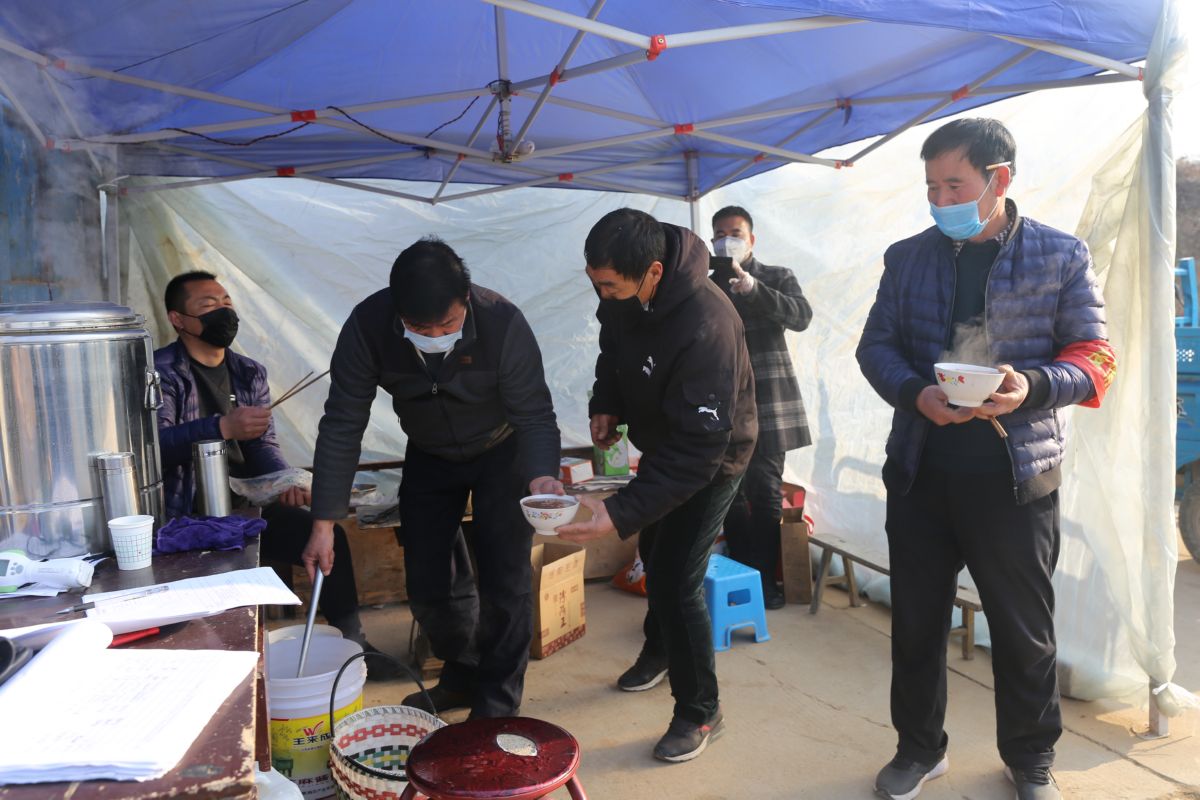 2月12日上午,夏县庙前镇堡尔村贫困户赵龙道和妻子李佛手,开着三轮车又来到村南疫情防控路口,为坚守在路卡值班的党员干部送上他们亲手做好的饭菜。“这些年,我们贫困户享受了党的各项优惠政策,生活一天比一天好。眼下,全国上下都在抗击肺炎疫情,咱村党员干部白天黑夜把守路口,挨冻受冷,心里真是过不去,做点小事是应该的……”赵龙道说出了心里话。