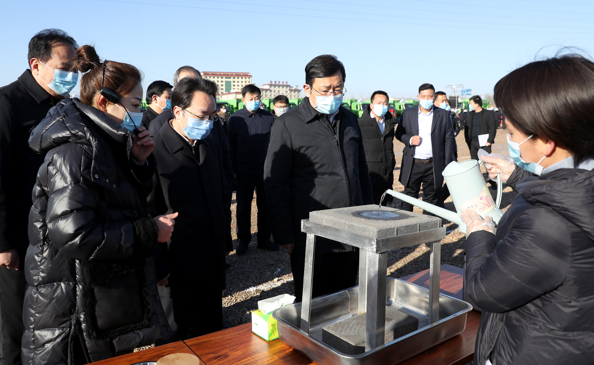 丁小强、朱鹏等参观建筑垃圾清运处置及资源化利用项目产品 记者 雷哲侠 摄