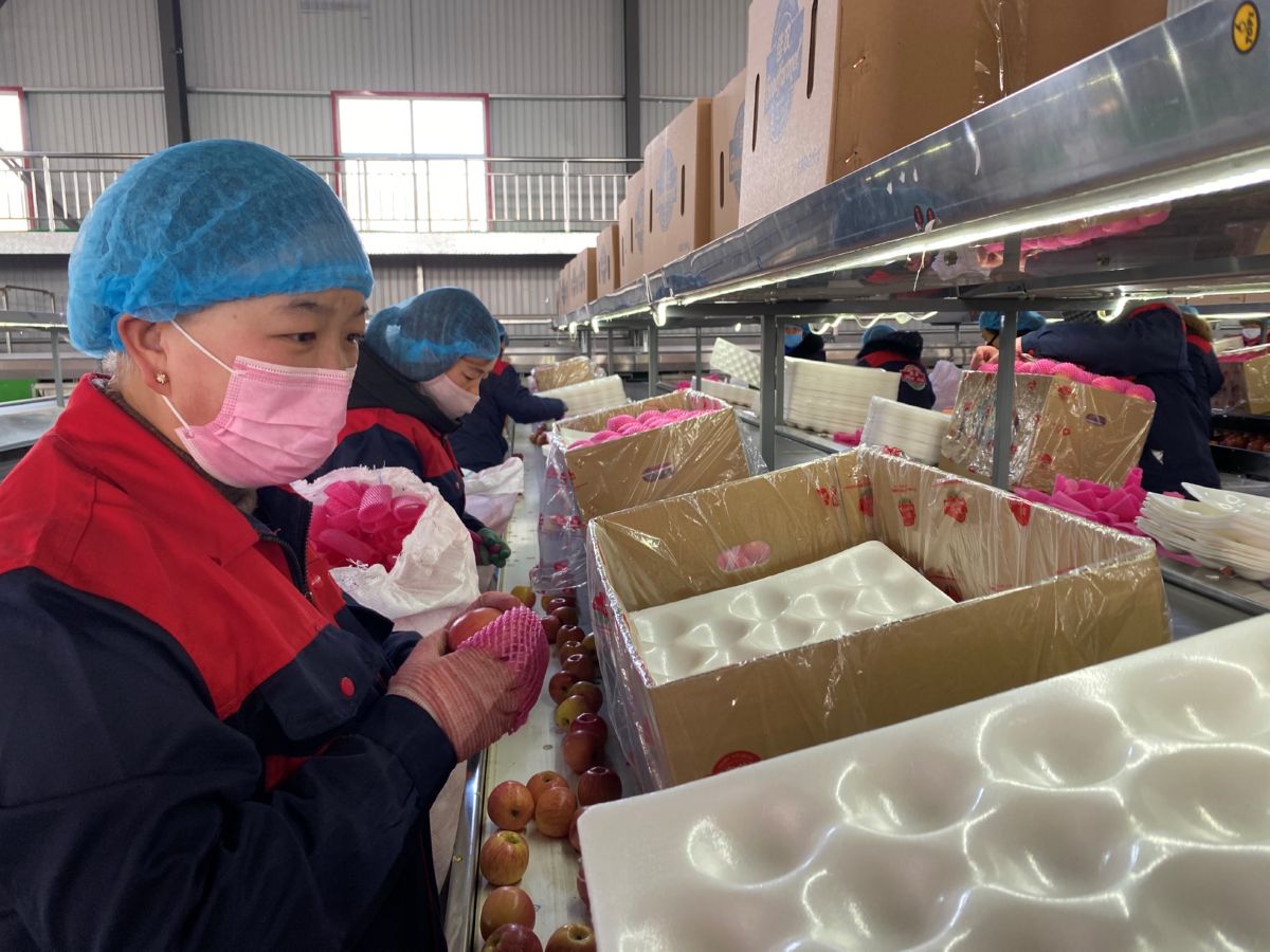 ▲皓美果蔬有限公司的员工正在分拣苹果 刘凯华 摄
