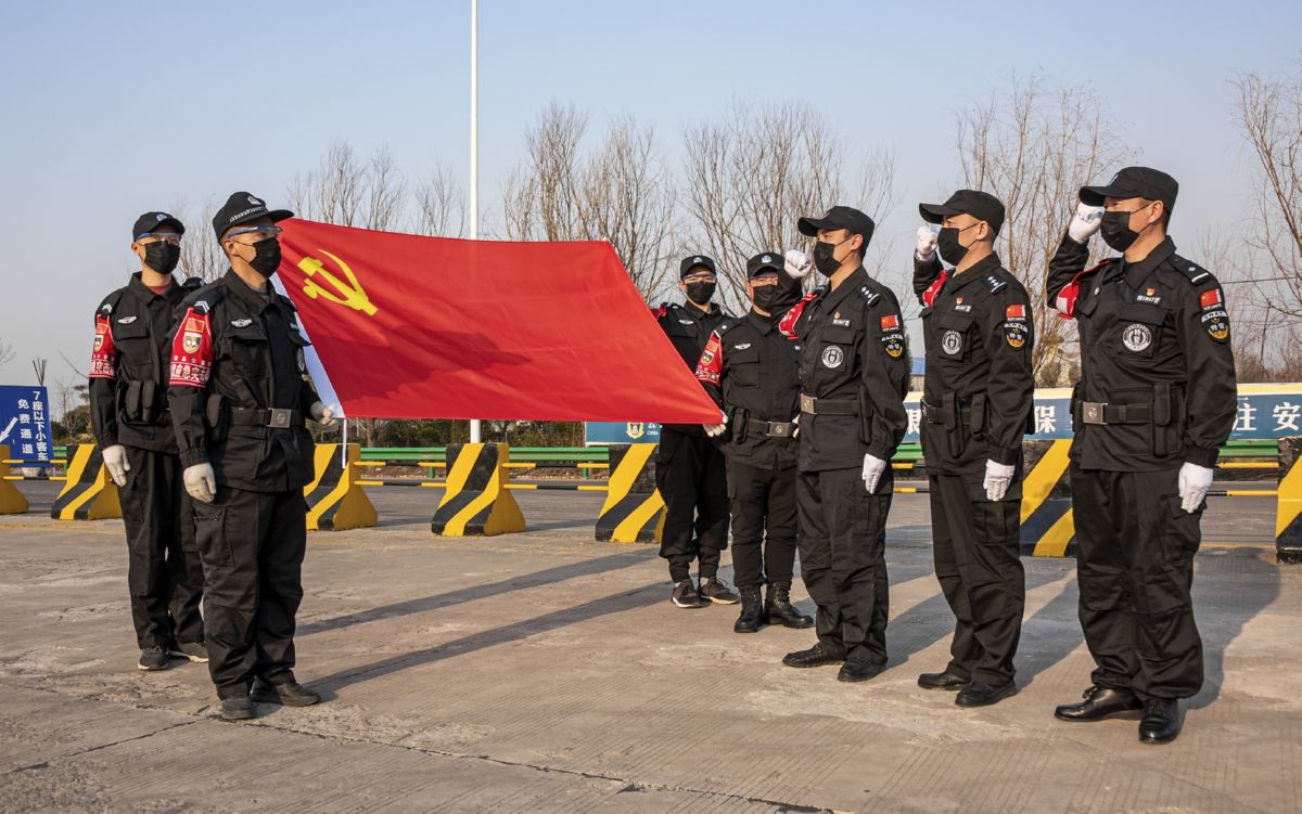 ▲2月19日下午,在高速公路万荣西口疫情防控检查站,万荣县委组织部、县直工委和县公安局党委为3名新党员举办了一场特殊而庄严的入党宣誓仪式。