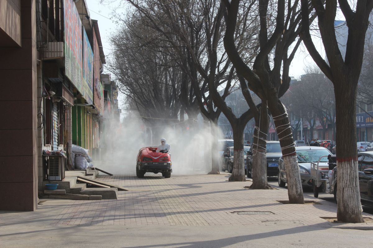 2月18日,万荣县农机发展中心组织农机服务专业合作社利用自走式弥雾喷药机,对卫生责任区进行喷药消毒。