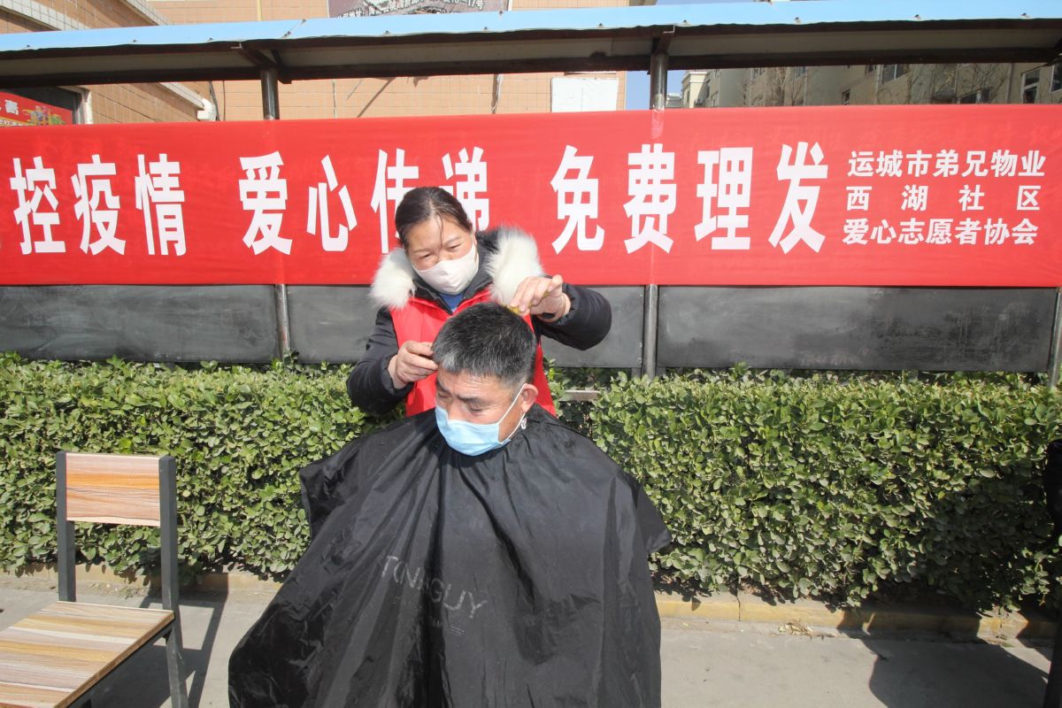 ▲2月23日,闻喜县西湖社区爱心志愿者在该县西湖小区免费为居民理发。