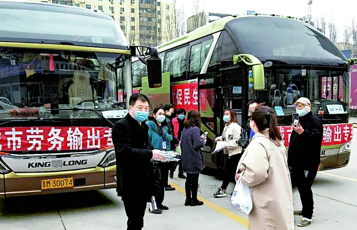根据人社部和省人社厅的要求,市就业和人才服务中心积极作为、主动联系,加强输入地、输出地信息对接,助推企业复产,帮助农民工安全有序返岗。该中心协调交通、卫健等部门,严格落实疫情防控消毒措施,依托山西联众人力资源公司,为农民工返岗安排专车、免费体检,提供消毒、防护用品等,并由专人负责全程护送到用工企业。当天,38名返岗复工人员经测量体温正常后有序登上专车,前往广东复工。