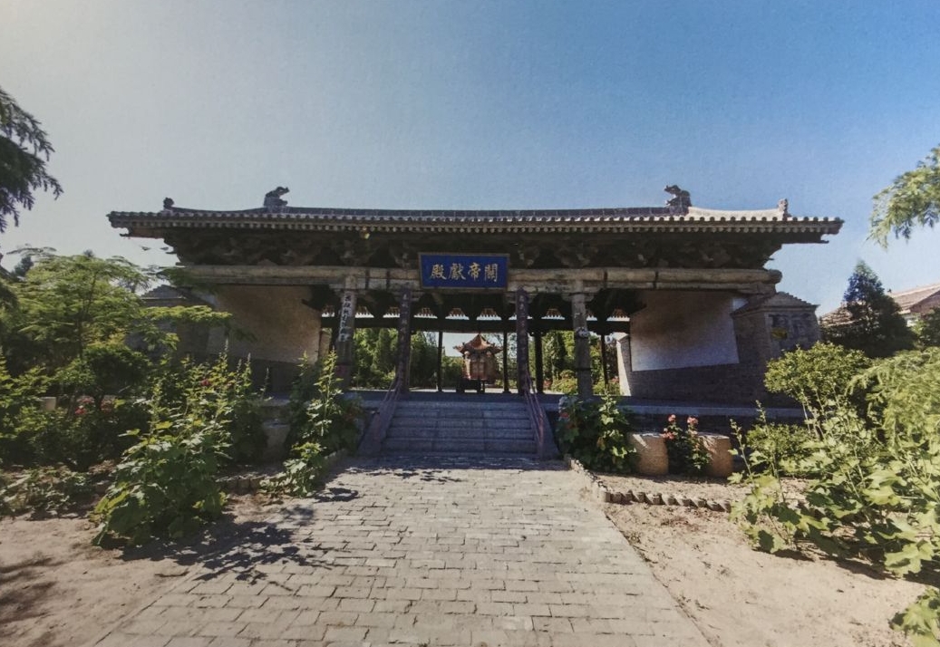 关帝庙创建年代不详,现仅存元代献殿一座。大殿坐北朝南,面宽五间,进深四椽,单檐悬山顶,无栏额,前檐施粗圆木通面额,额上施斗11朵为四铺作单下昂,梁架结构彻上露明造,其上施驼峰承接平梁,平梁上立脊瓜柱与叉手,四椽与平梁上皆施彩绘,与大殿同期,为四椽通达前后檐。