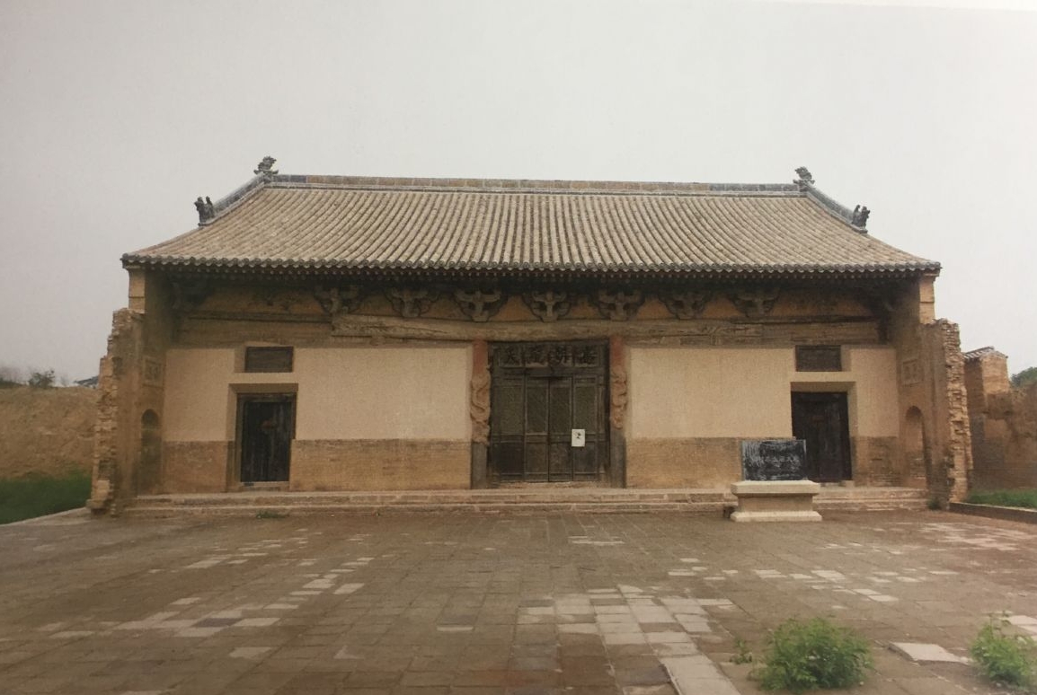 该建筑坐北朝南,东西长9米,南北宽6.2米,建筑面积55.8平方米,创建年代不详,现仅存北殿。北殿面阔三间,进深四椽,单檐悬山顶,柱头斗栱为四铺作单昂,补间斗栱四铺作单抄,每间一朵,当心补间栱出45°斜栱,前檐当心间装板门,两次间为棂条窗,均为现代维修时改造。