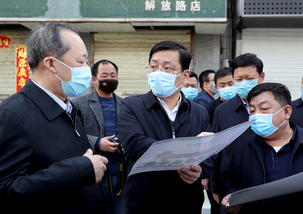在解放南路提升改造工程现场,丁小强测量体温后,进入施工现场,实地查看道路管网和人行道的铺设,详细听取了市住建局负责人对该路段绿化设计、今年城建重点项目、中心城区棚户区改造等情况汇报。他指出,要进一步提升街道绿化档次,做到栽养一体化、乔灌木相结合,打造层次感鲜明的城市绿色景观。要加快中心城区与临猗县连接道路建设,实现路网互连互通,早日形成盐临夏一体化发展的大路网;着力打通中心城区道路微循环,建设安全畅通、高效快捷的中心城区路网,让群众出行更便捷高效。