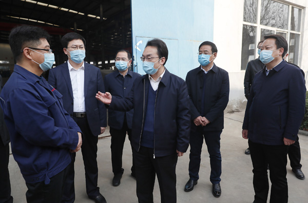 朱鹏在运城制版印刷机械制造有限公司调研企业复工复产情况。 记者 闫鑫 摄