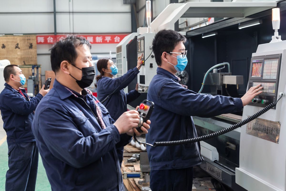 2月25日,山西风源机械制造有限公司车间工人在调试生产设备。
