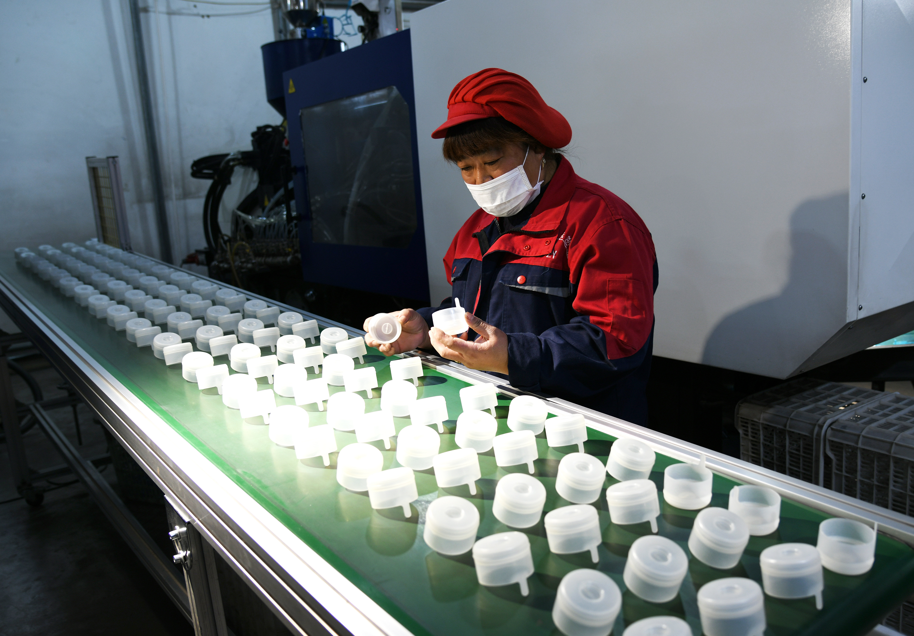 2月25日,山西卓运塑料容器有限公司车间工人在有序生产。 闻喜县礼元镇行村村民赵志强创办的山西卓运塑料容器有限公司,于2月22日复产,吸收了附近40余名中青年劳力。张德福 摄