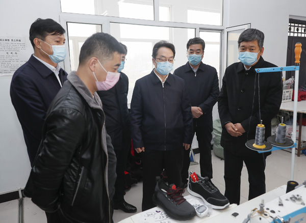 朱鹏深入平陆县常兴社区扶贫车间调研企业复工复产、项目建设、脱贫攻坚及疫情防控情况。 记者 闫鑫 摄