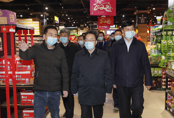 朱鹏深入平陆县人人家超市调研疫情防控措施落实情况。记者 闫鑫 摄