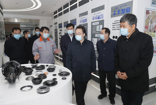 朱鹏深入山西新环橡塑制品有限公司调研企业复工复产及疫情防控情况。 记者 闫鑫 摄
