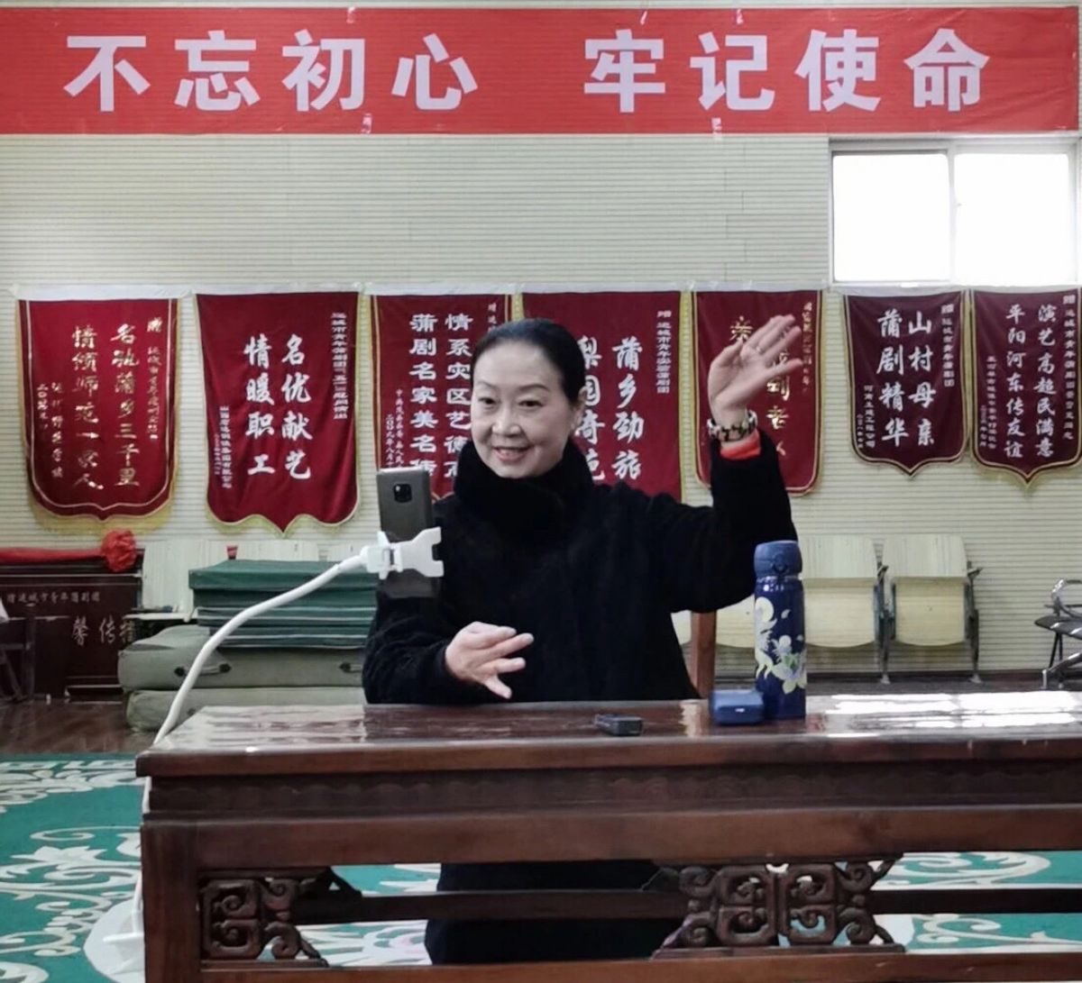 两个小时的授课很快结束了,对于景老师的付出,学生们通过屏幕点赞。“任何时候都不能放下学习,越是特殊时期,越要严于律己,有戏没戏上台便知。”景雪变说,“疫情终会过去,蒲剧还要传承,不能让年轻人松了劲。”