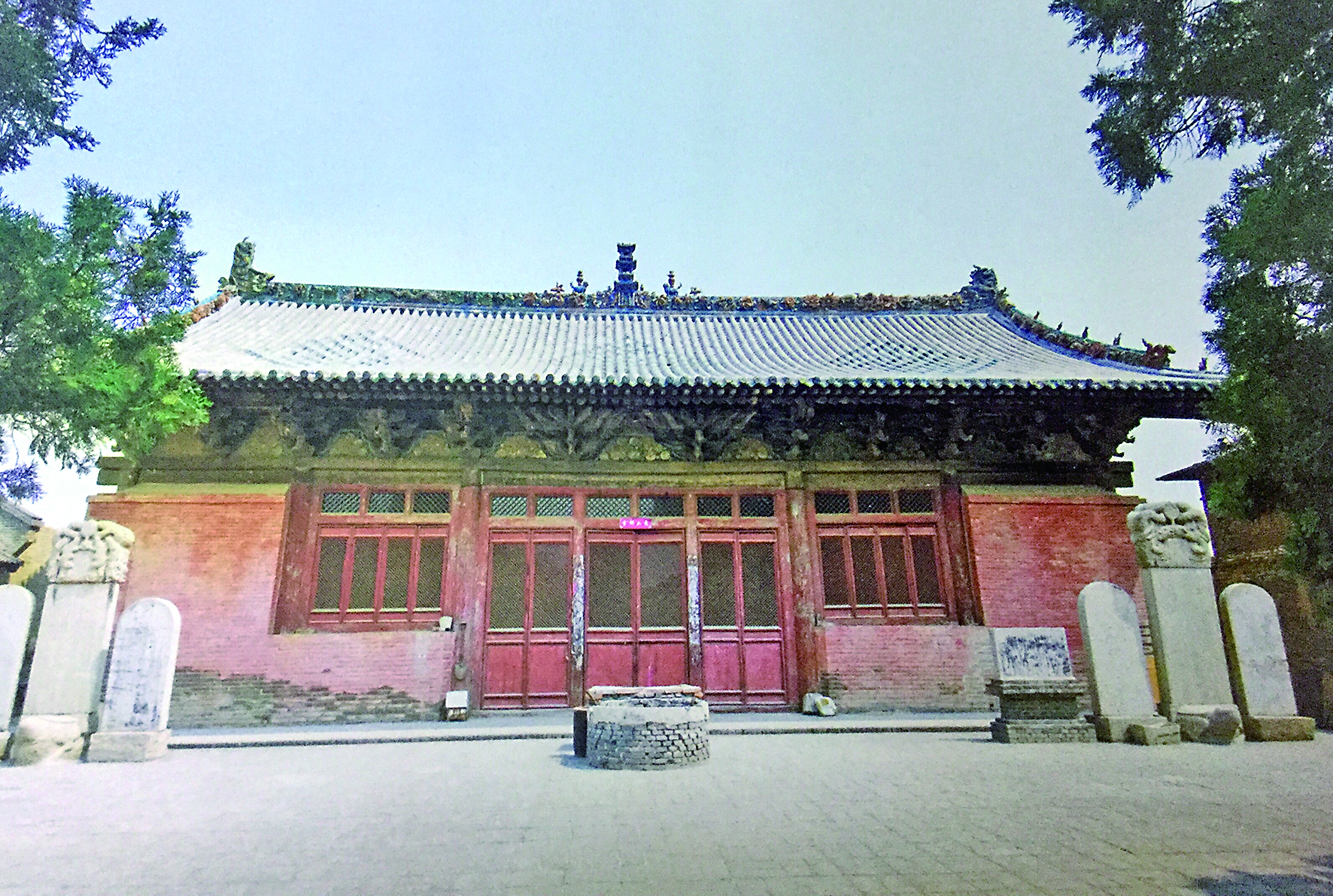 【青龙寺】 类型:古建筑 时代:元 地址:稷山县城西4公里马村西侧 寺始建于唐龙朔二年(662年),元至元二十六年(1289年)重建腰殿,至正十一年(1351年)重修大雄宝殿,明、清两代屡有修葺。现存建筑腰殿、大雄宝殿及垛殿为元代原构,余皆明、清所建。 寺址坐北朝南,占地面积6790平方米,呈二进院落。前院有山门、十王殿、腰殿,腰殿两侧有祖师殿和无名殿;后院有大雄宝殿,两侧为伽蓝殿、护法殿及东西厢房。