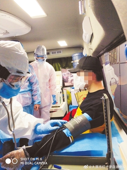 山西第19例新冠肺炎康复者正在捐献血浆 田蔚然摄