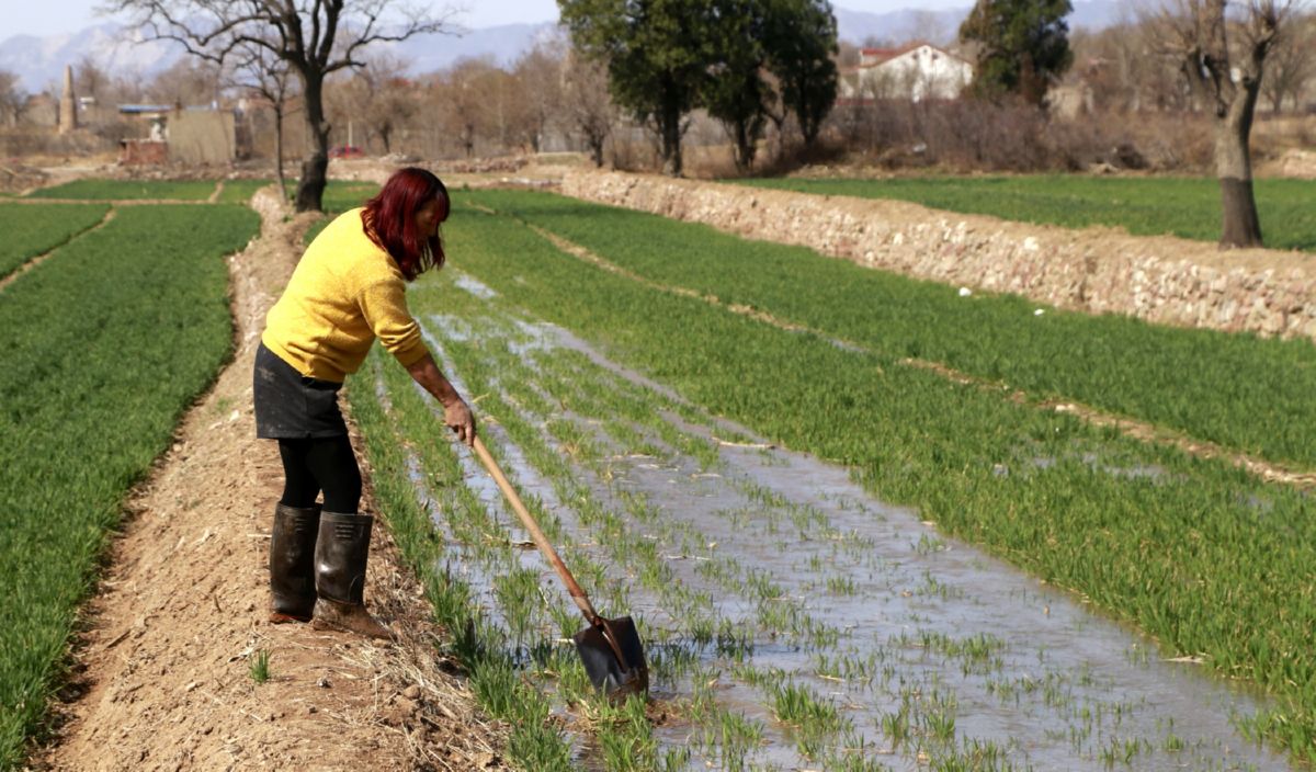 ▲3月3日,稷山县化峪镇四合庄自然村一村民在浇地。