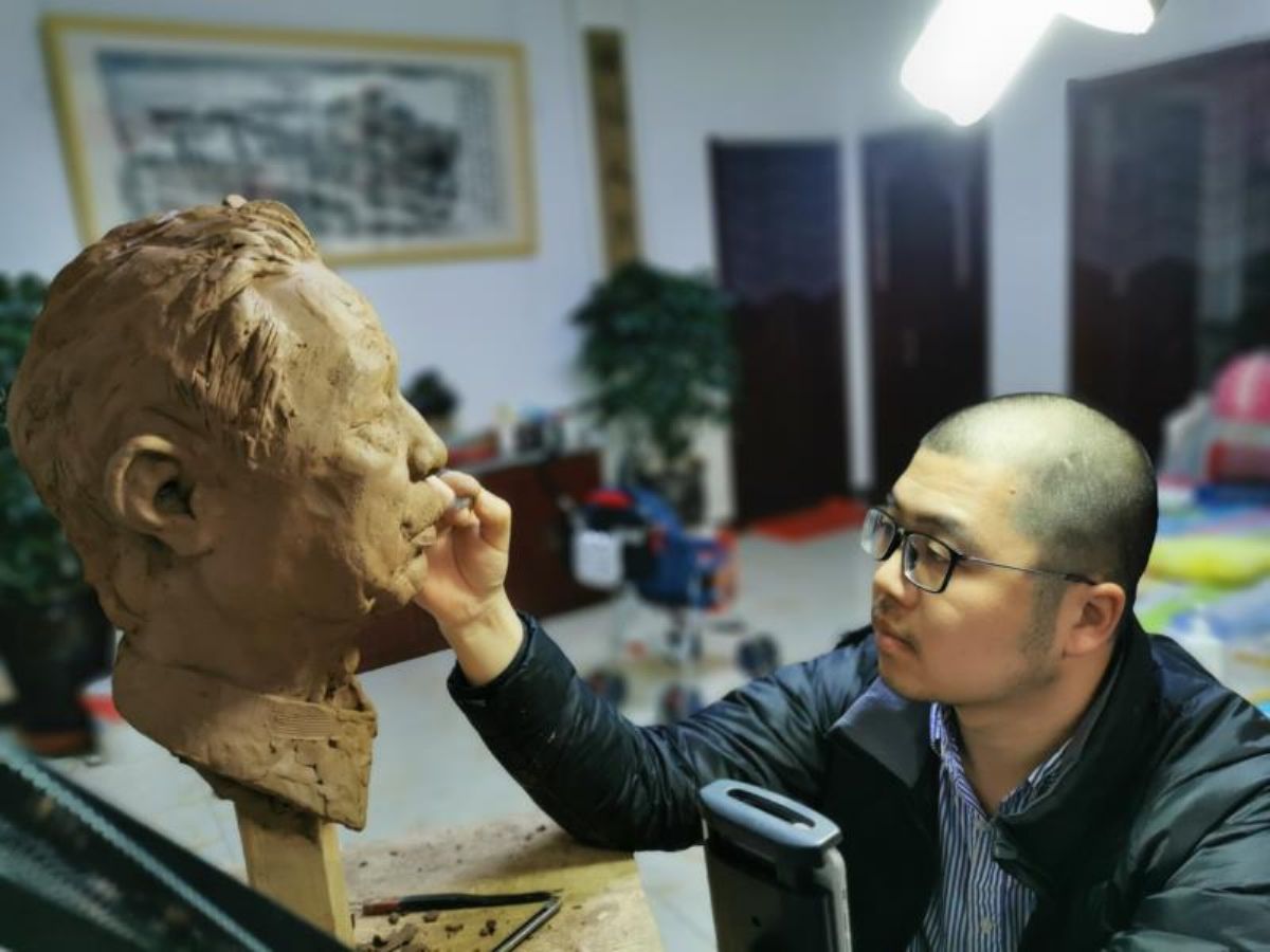 该作品为与其人等大泥塑。作者用家乡运城的黄河胶泥进行创作,力求还原院士为国为民、鞠躬尽瘁的形象,致敬钟南山院士。 (本通)