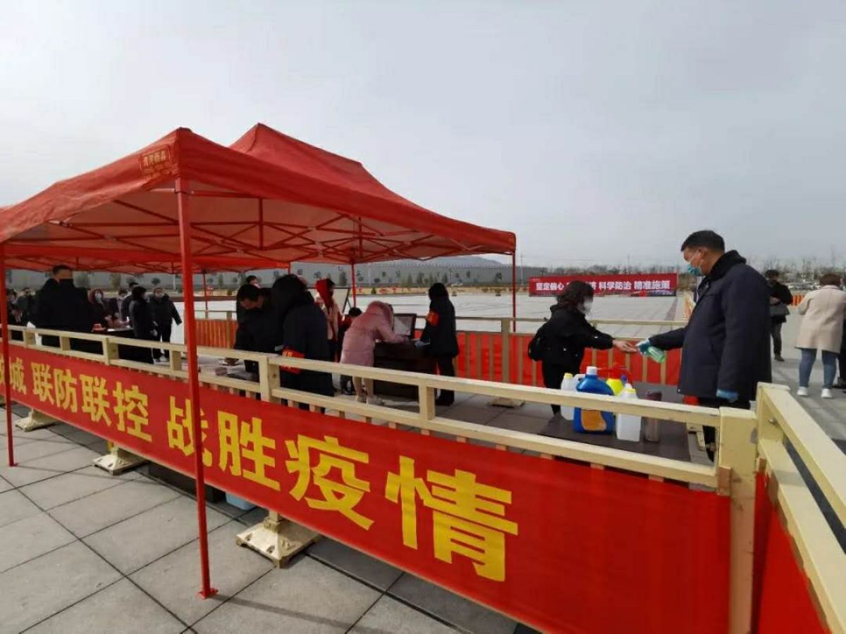 第一步,进入景区前,在关帝庙广场的预检点,工作人员会告知游客佩戴好口罩,并且扫描“疫行查询码”,通过中国移动、中国电信、中国联通大数据平台,进行行程查询,确定游客来自低风险区域时方可放行。若游客来自中风险及以上区域,景区会对其进行劝返。