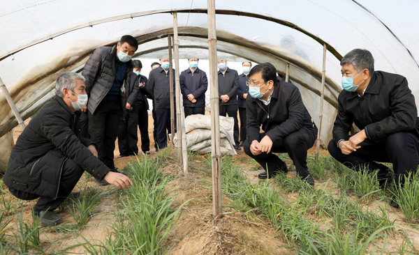 丁小强在张店镇西牛村实地察看蔬菜大棚种植 记者 雷哲侠 摄