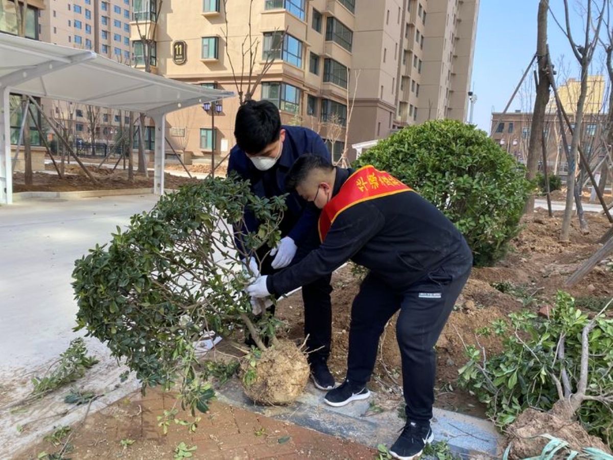活动现场,志愿者们身穿红马甲,分工合作,有的志愿者搬运树苗、挖坑、扶苗,有的结伴填土,默契配合,此外,志愿者们还对绿化带中的杂草、枯枝进行了清理,圆满完成了此次植树活动。