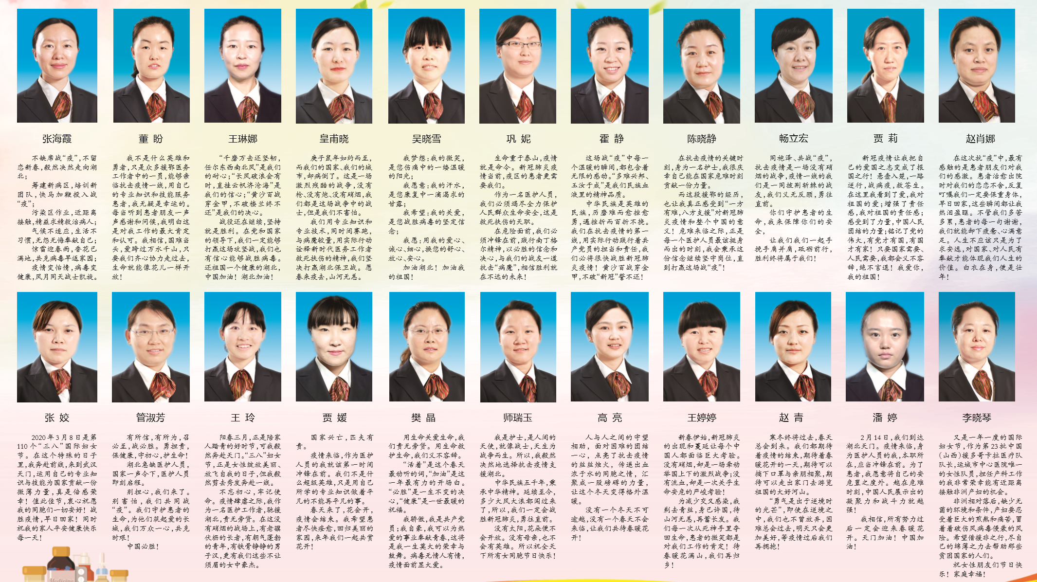 亲爱的支援湖北医疗队和援非医疗队女队员们、全院广大女职工们: