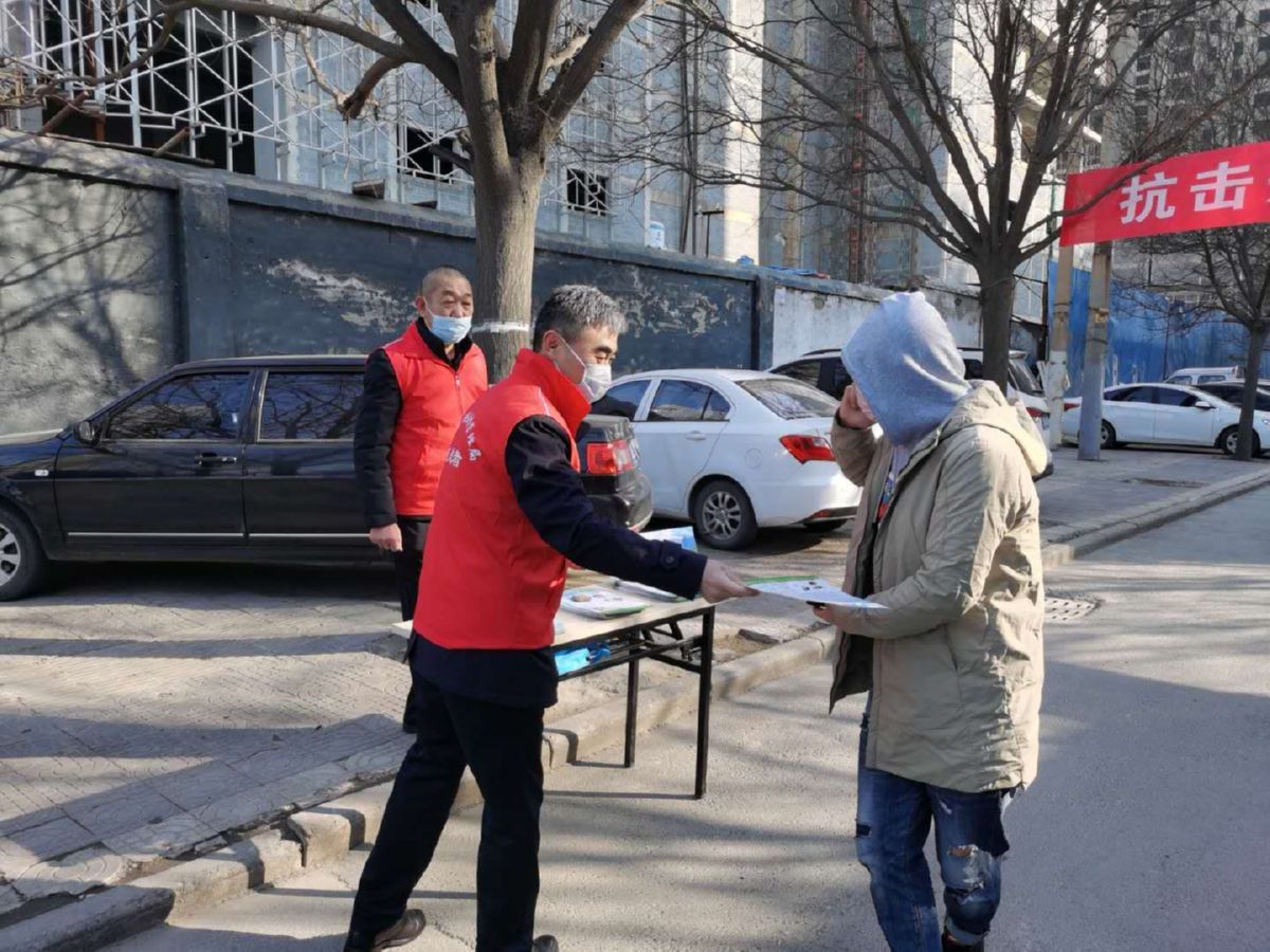 志愿者在向社区居民发放宣传资料 祁克宁 摄